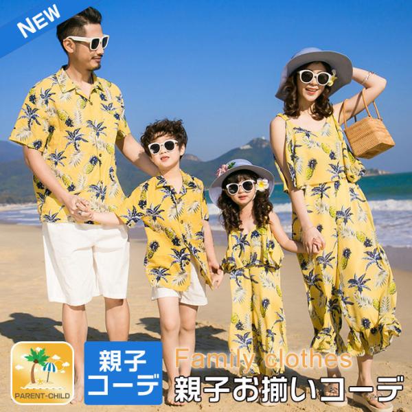 アロハシャツ メンズ 親子コーデ 親子 ペアルック 親子 お揃い 親子 ペア パイナップル柄 オールインワン アロハシャツ 父の日 男性はアロハシャツのみ Sp16 マユポポ 通販 Yahoo ショッピング